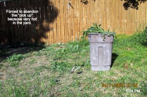 Yesterday, time was spent in the yard. The first time in two weeks that I’ve been outdoors. I lacked energy so the project was accomplished after several “stop and go.”