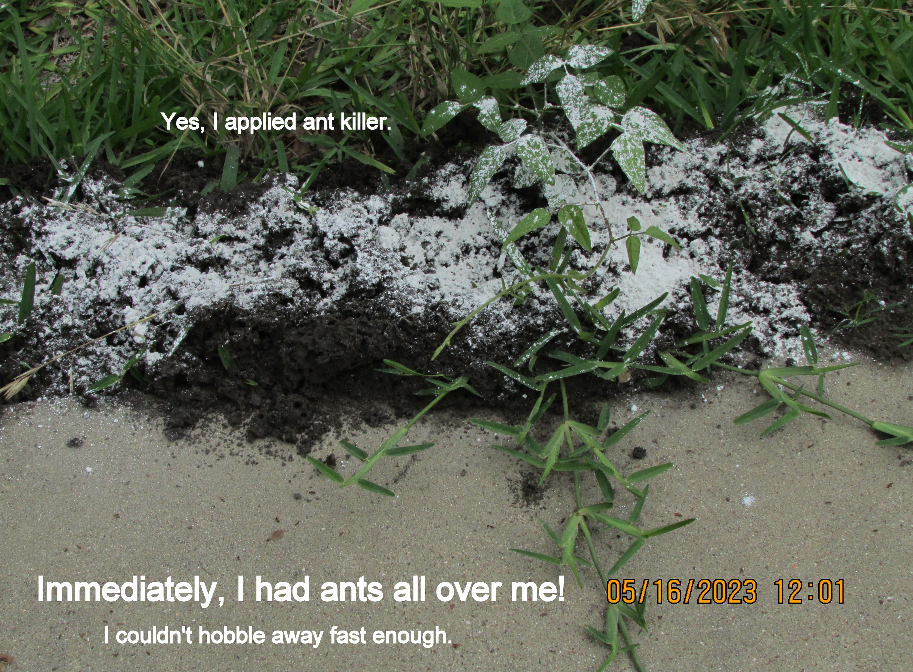 Adding insult to injury !! May16 by Lorraine Frantz Edwards “Anti-Itch” cream isn’t relieving the itch!! I was hobbling around the carport, and yard, doing some necessary projects. Slow lane, Lorraine!! Share this: Click to share on X (Opens in new window) X Click to share on Facebook (Opens in new window) Facebook Like Loading...