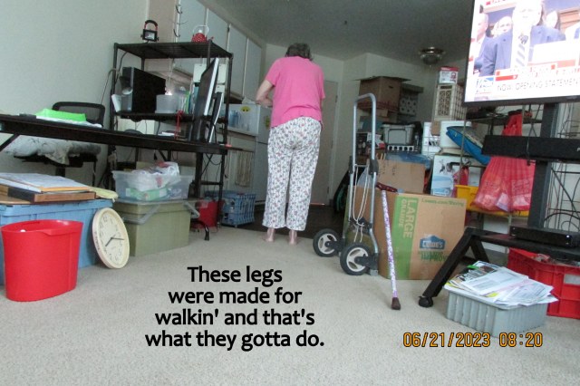 Number Three: Our weather has been extremely hot. The back of my KIA is crammed full of things “they” could not, would not take. “No liquids, no prescriptions, etc.” The containers are “supplements” and not prescriptions!!! I’ve made several trips to my car with my hand truck and a medium-size box to transport the items. Many more trips are required but I’m physically and emotionally exhausted.