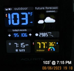 Temp at 7:15 PM Aug6 by Lorraine Frantz Edwards Share this: Click to share on X (Opens in new window) X Click to share on Facebook (Opens in new window) Facebook Like Loading...