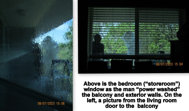 3. Did Becky understand that blog message? The clutter was in the living room after moving things from the balcony. Our building is experiencing a new paint job.