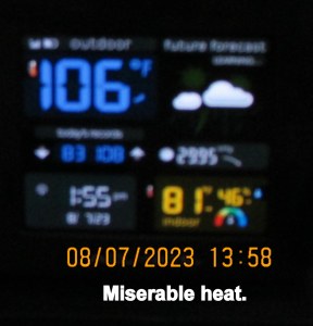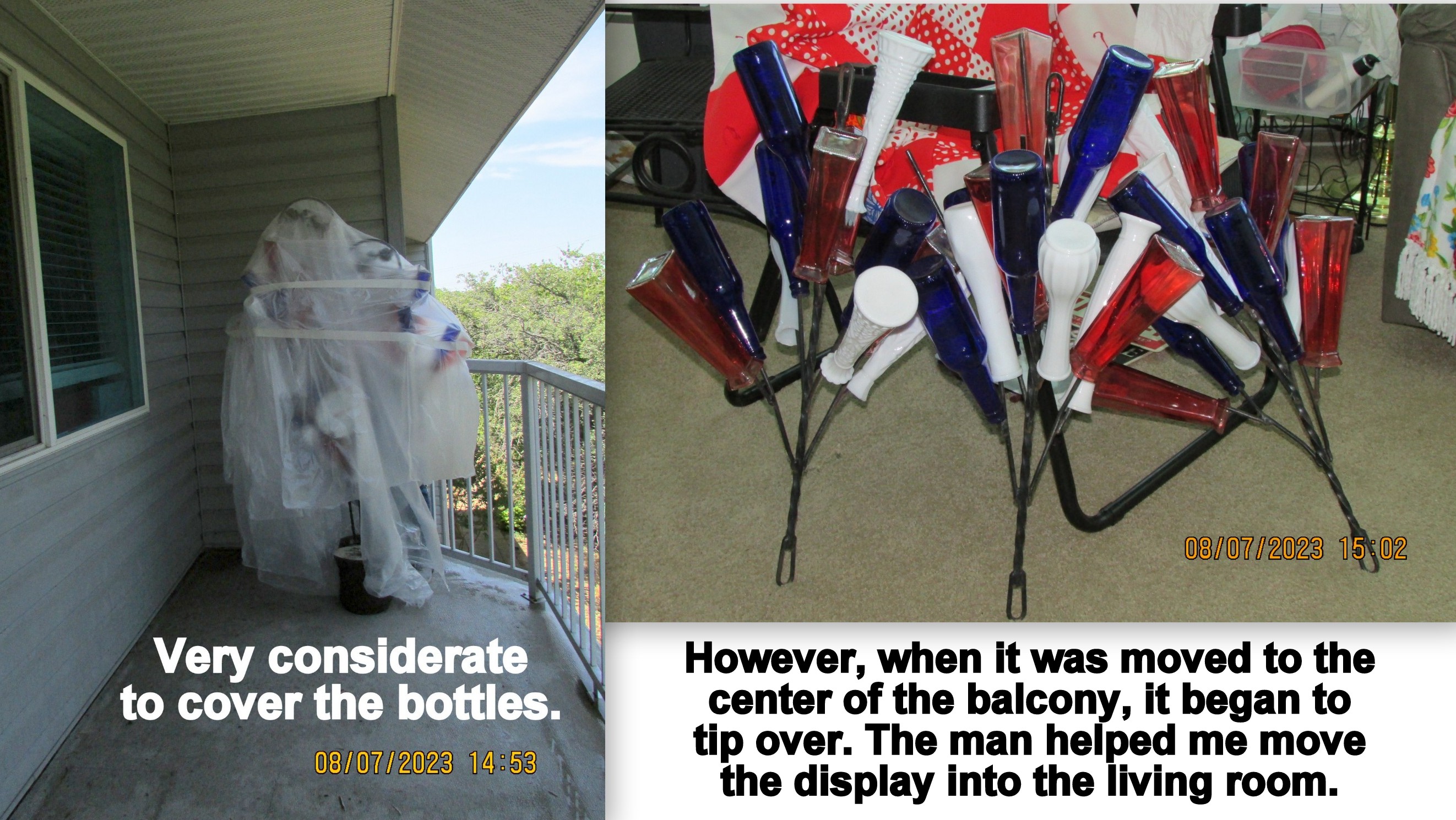 I moved things off the balcony because the building is receiving a new paint job. ~~~~  OMG!! About one hundred things to move in one-hundred-degree heat!!
