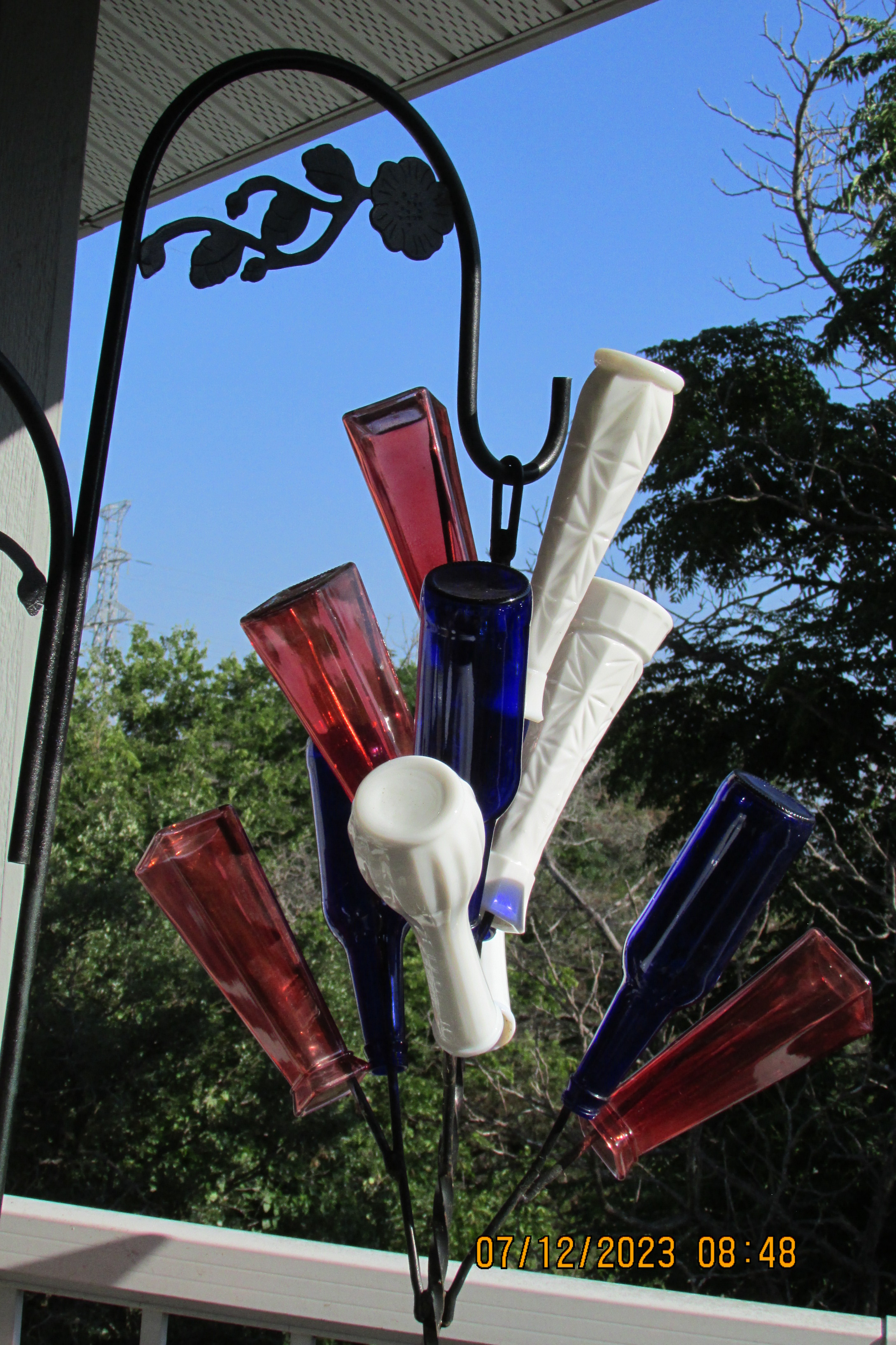 Conservatively, I could not duplicate those bottles for $100.00 (or more). I’ll replace the smaller cobalt blue bottles. Very few people will ever see the display on my balcony BUT the bottles are part of who I am. (Peculiar??)