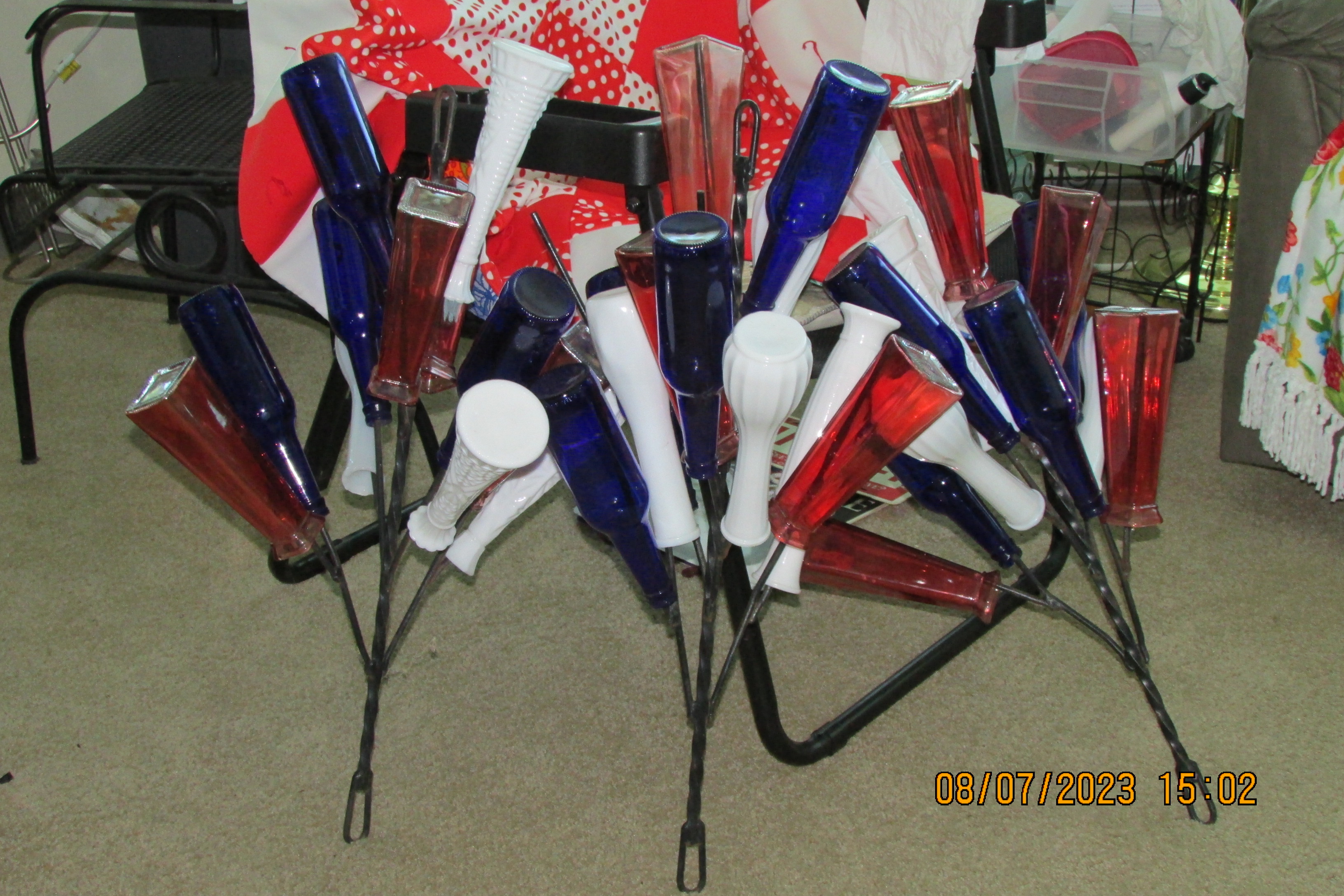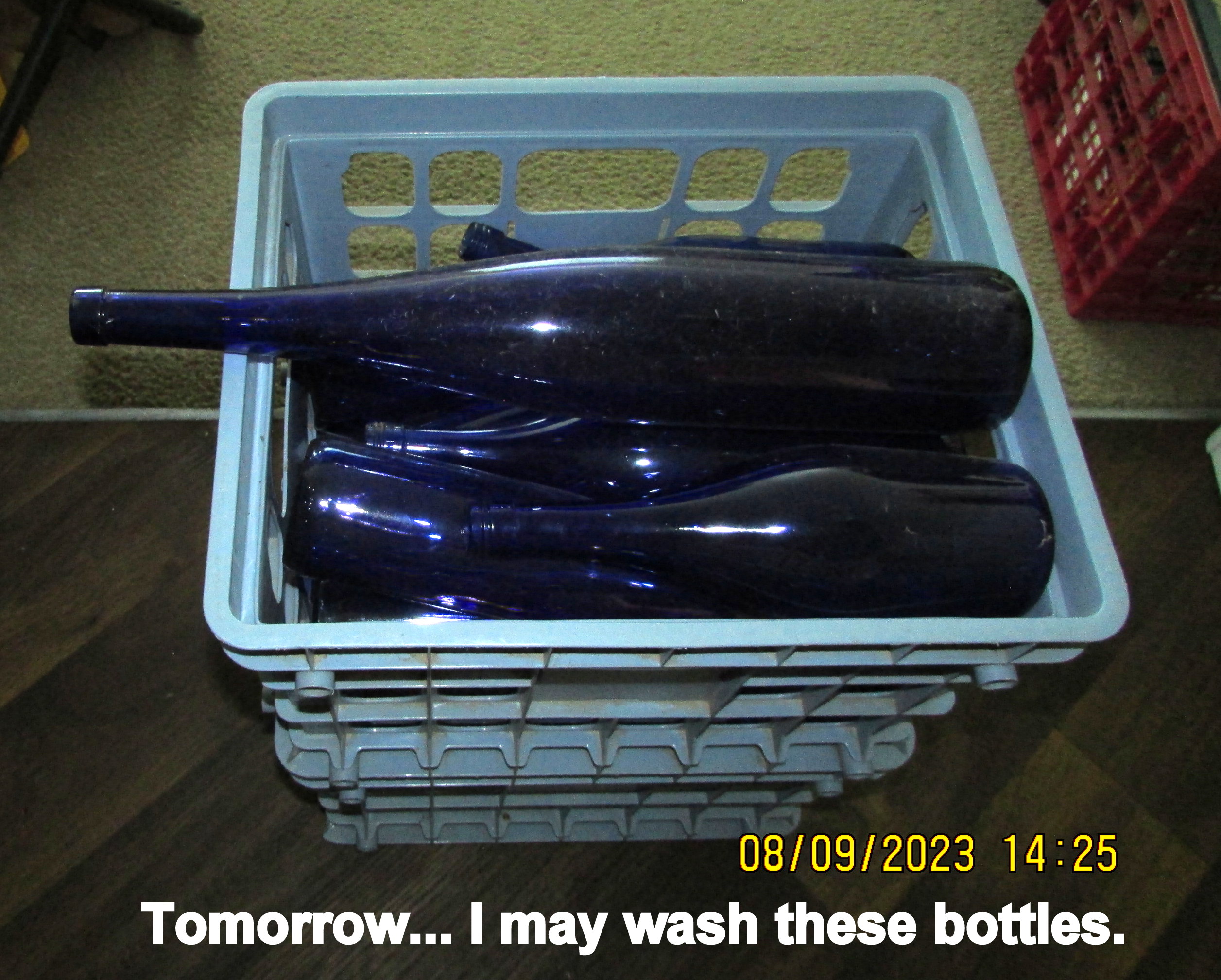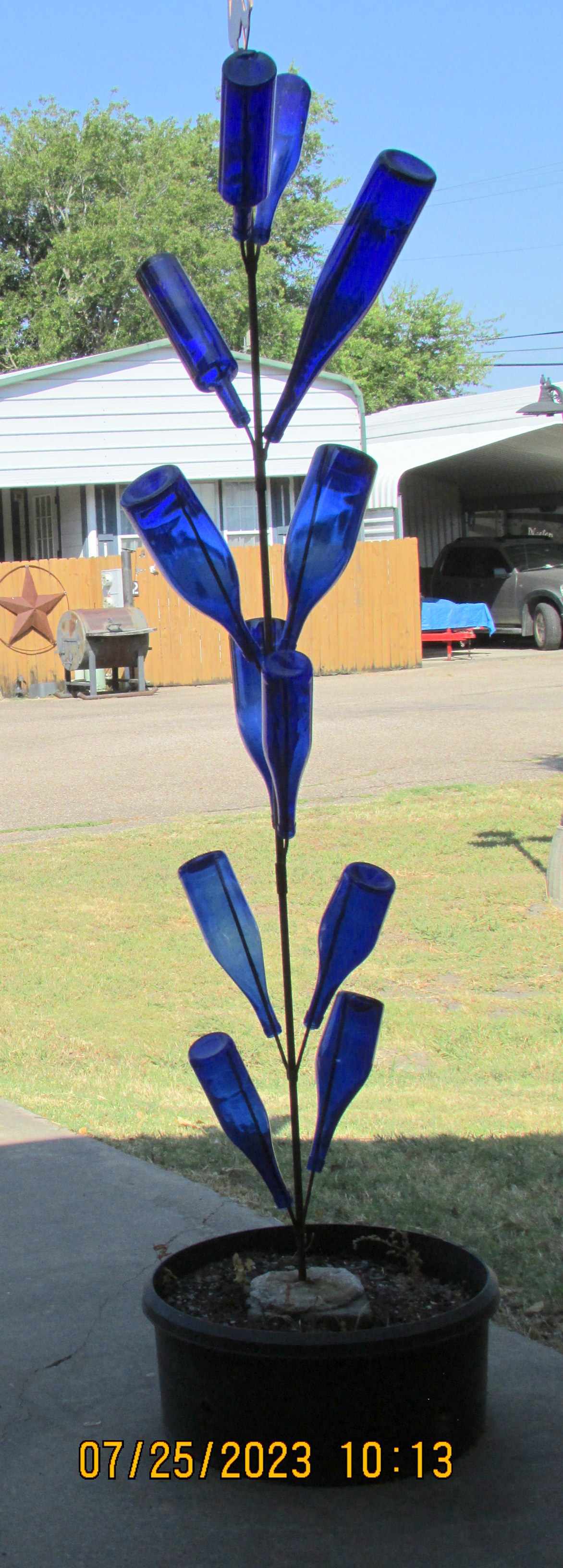 Recently, I removed the cobalt blue bottles from the bottle tree—at my trailer home. Those LARGE wine bottles represent a lot of money if I (we) went out to purchase the product. Some… were a gift (in Livingston) while some were my purchase and someone else drank the wine and returned the bottle.