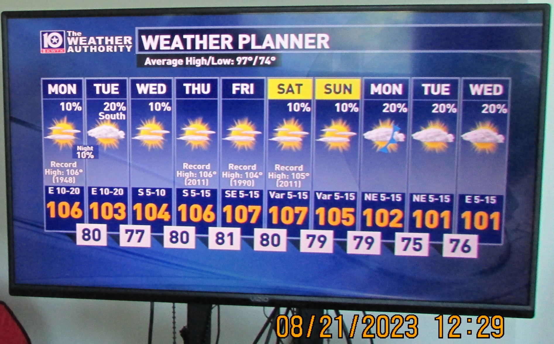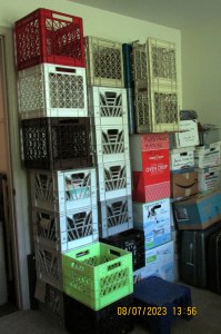 Yesterday, two residents approached me asking for my assistance with (1) the library, and (2) a yard sale. Hey, I’m an expert at “yard sales” but whatever we do here will be a unique experience. Furthermore, we must wait for cooler weather. I’m thrilled with the idea because I visualize offering all those empty crates.